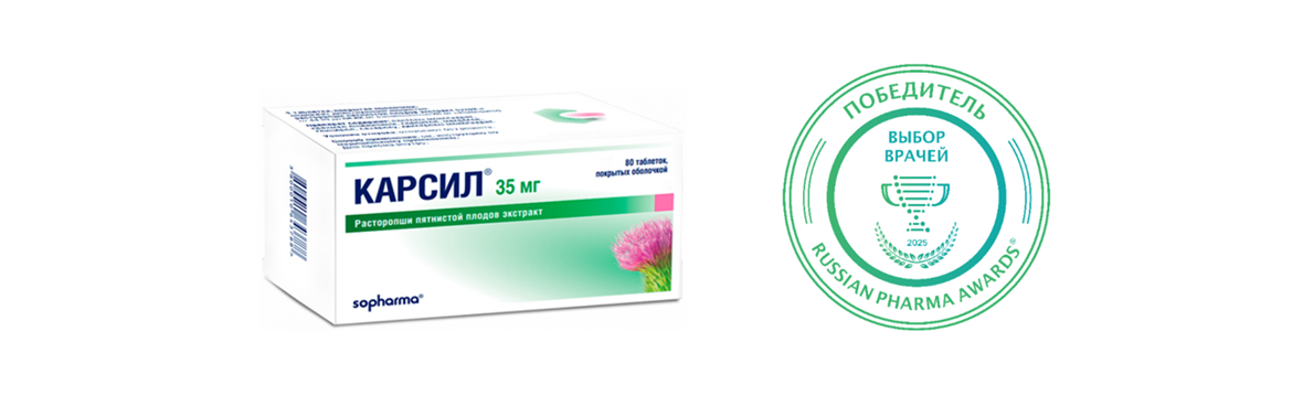 Препарат компании ООО «СОФАРМА РУС» Карсил® занял 1-е место в номинации «Гепатопротекторное средство растительного происхождения» в ежегодной премии в области фармации и медицины Russian Pharma Awards® 2025.