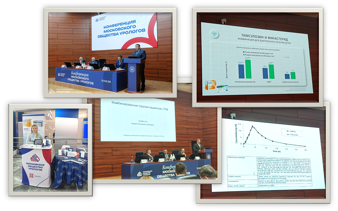 Насыщенная двухпоточная научная программа включала доклад проф. А.З. Винарова «Комбинированная терапия пациентов с ДГПЖ», в котором достойное, приоритетное место занимали препараты тамсулозин /Фокусин и финастерид/Пенестер. Научная программа сопровождалась выставкой, где на стенде Софармы Московская команда